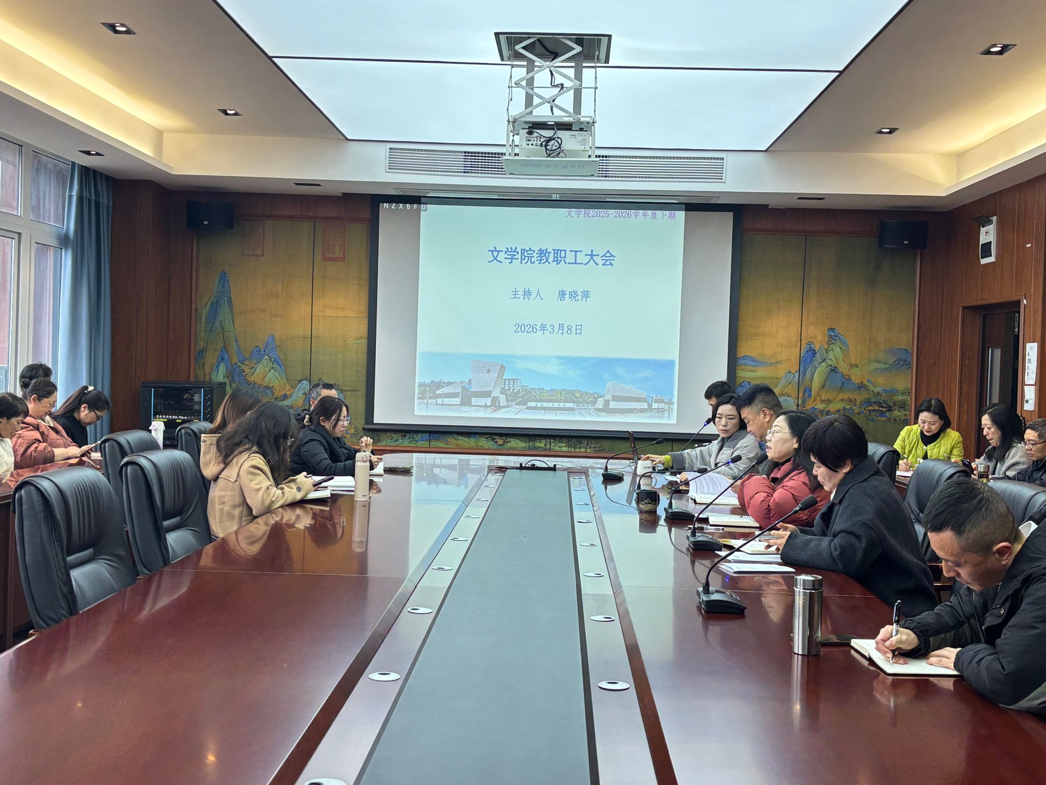 3月8日上午10:00,我院在博学楼3栋404会议室召开2026年春季学期开学教职工会议。会议由党总支书记唐晓萍主持,全体教职工参加会议。