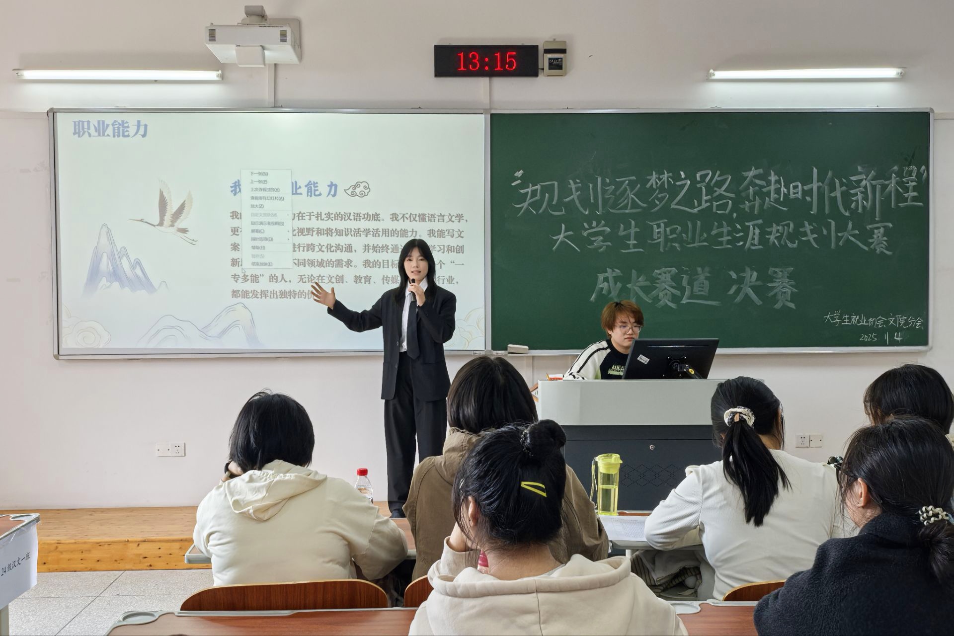 为助力学生认知自我、探索外部职业世界、绘制职业发展路径、锻炼综合能力并了解职场与企业文化,11月4日,文学院大学生就业协会成功举办第三届大学生职业生涯规划大赛决赛。本次大赛以“规划逐梦之路,奔赴时代新程”为主题,全院学生积极参与。大赛分设两条赛道:成长赛道决赛在博学楼2栋404室举行,重在考察选手的职业目标规划与持续成长过程;就业赛道决赛在博学楼2栋307室举行,侧重考察求职实战能力与岗位胜任潜力。
