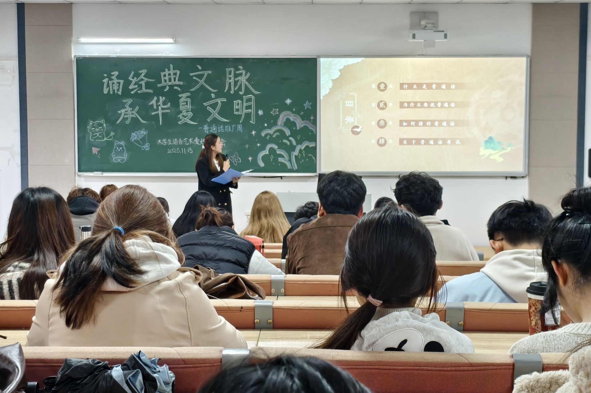 为了提升同学们规范使用普通话的意识与能力、营造校园普通话使用浓厚氛围,促进跨地域同学间的沟通与融合,11月15日,文学院大学生语言艺术爱好者协会在博学楼1栋301室成功举办“诵经典文脉,承华夏文明”普通话推广活动,全校学生踊跃参与。