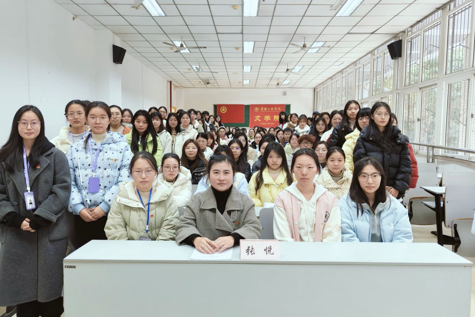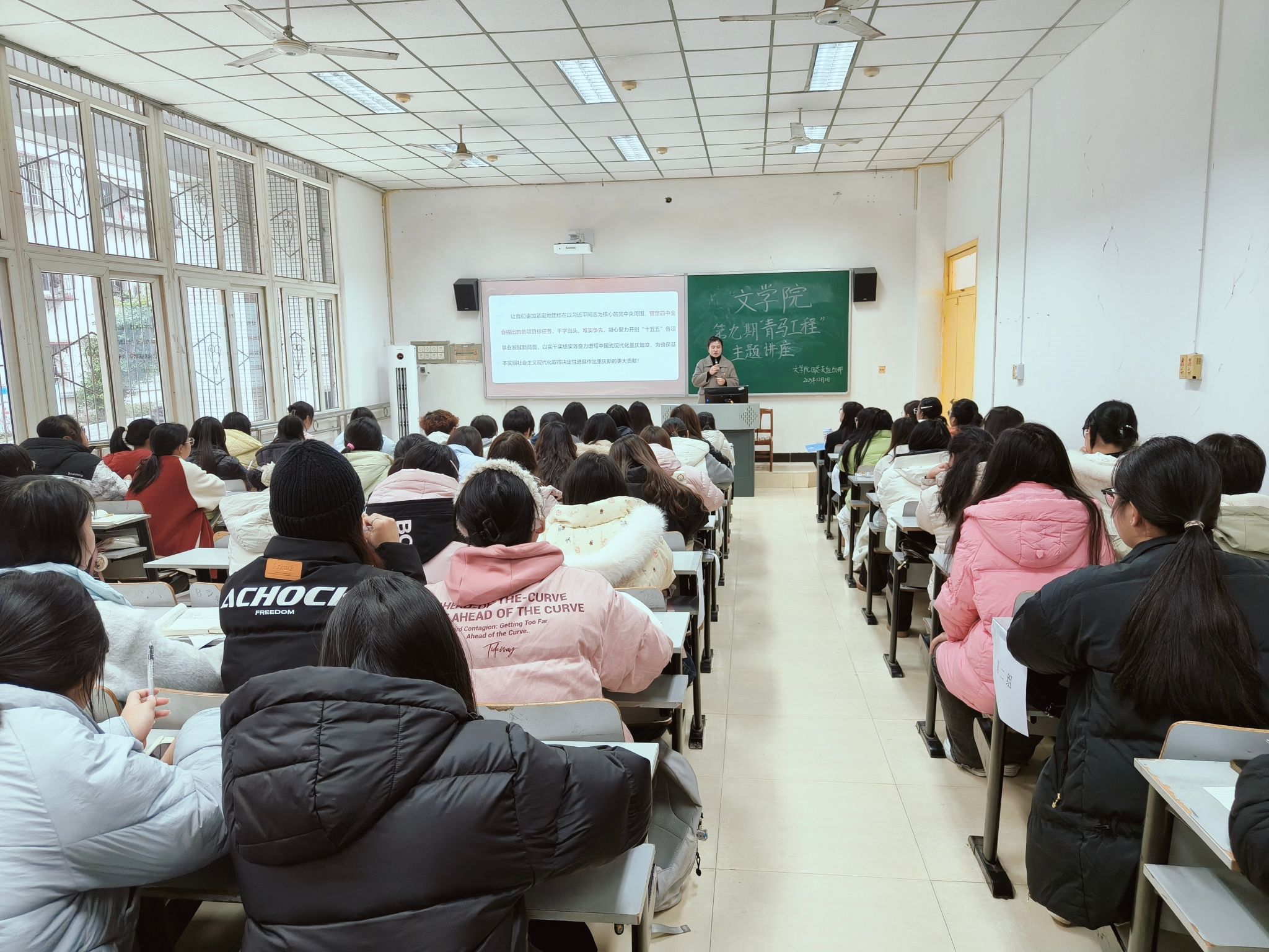 为深入学习贯彻党的二十届四中全会精神,准确把握“十五五”规划核心要义与实践要求,12月2日,文学院在沙龙校区1教102室举办第九期“青马工程”主题讲座。文学院学工办主任兼团总支书记张悦应邀主讲,“青马工程”全体学员参加学习。