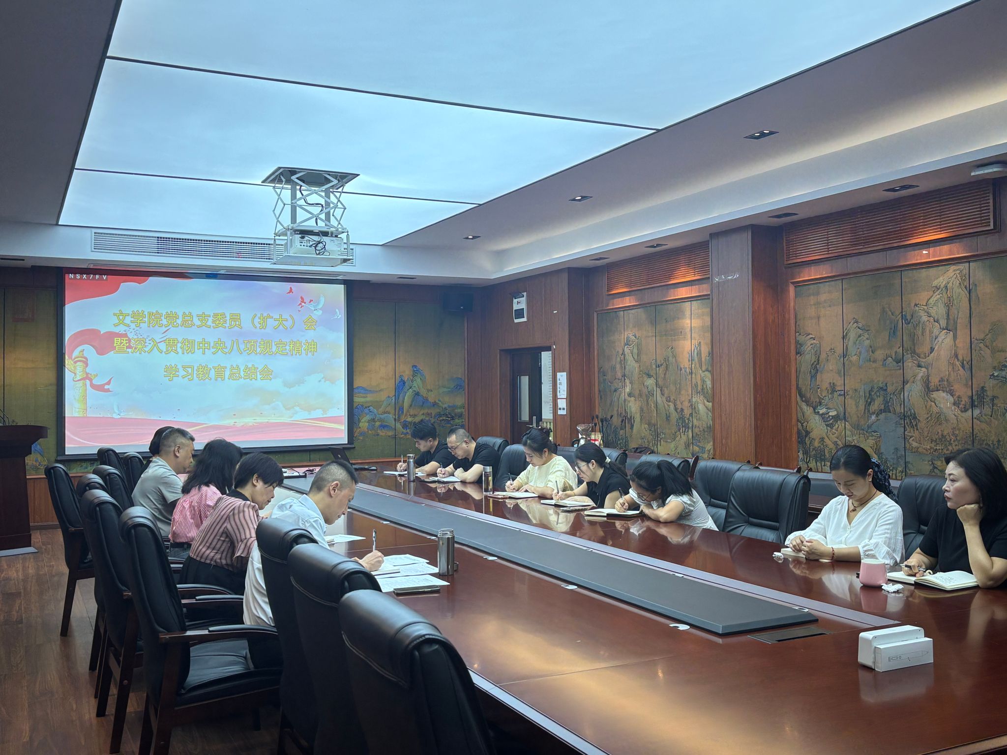 9月19日上午,文学院于博学楼3-404召开党总支委员(扩大)会暨深入贯彻中央八项规定精神学习教育总结会。会议由党总支书记唐晓萍主持,学院全体处级干部、专职组织员、党总支委员、各党支部书记参加会议。