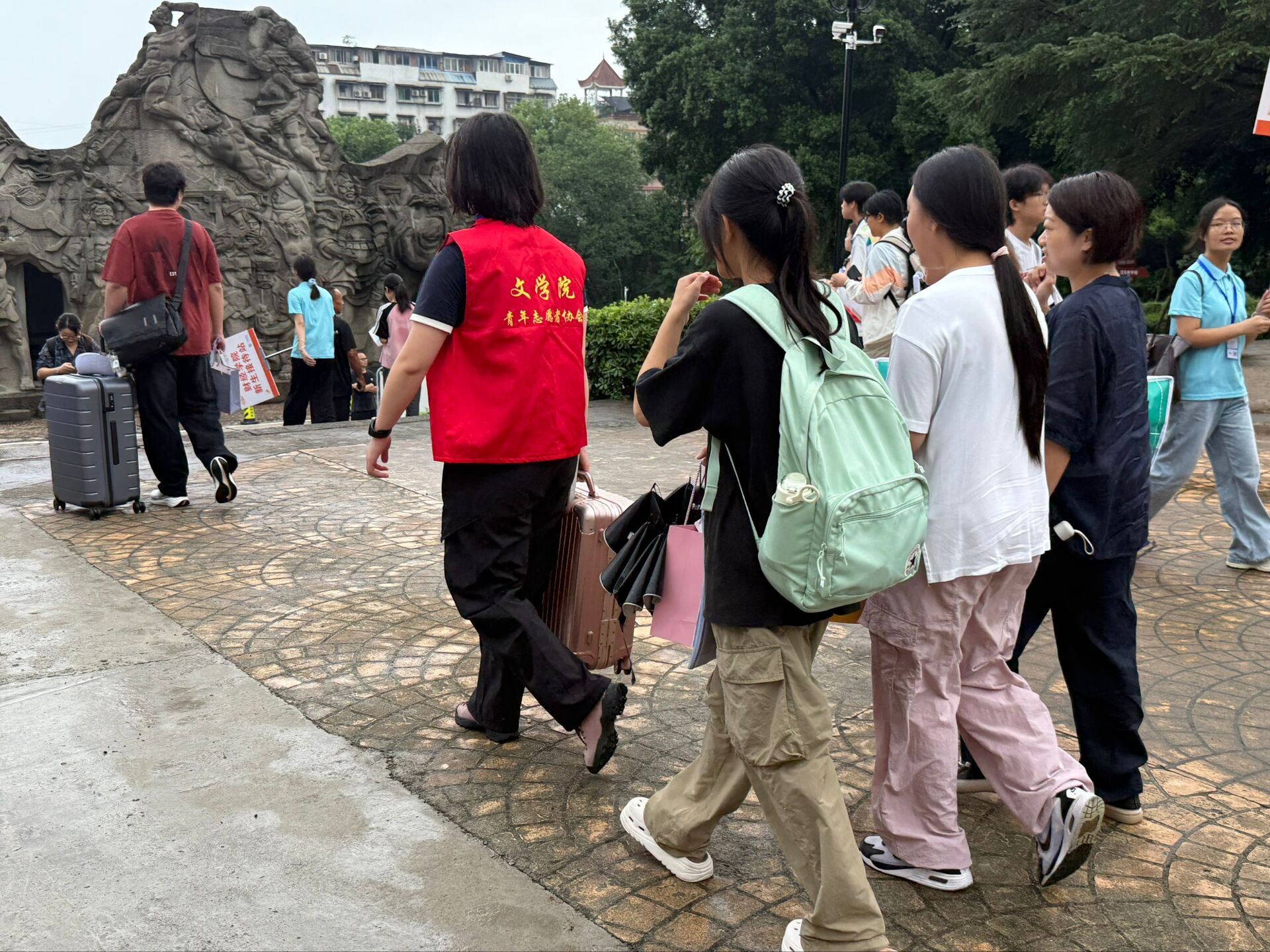 校园里,2025级新生们怀揣着憧憬与期待踏入校园,学生党员们的身影也活跃在各个迎新点位。在文学院新生接待站,党员同志早早到位,仔细核对新生信息,耐心解答新生及家长关于报到流程、校园生活等方面的疑问,用耐心与热情让新生感受到学院的关怀。